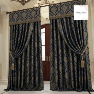 Royal Feather Jacquard Curtains – Midnight Blue Edition