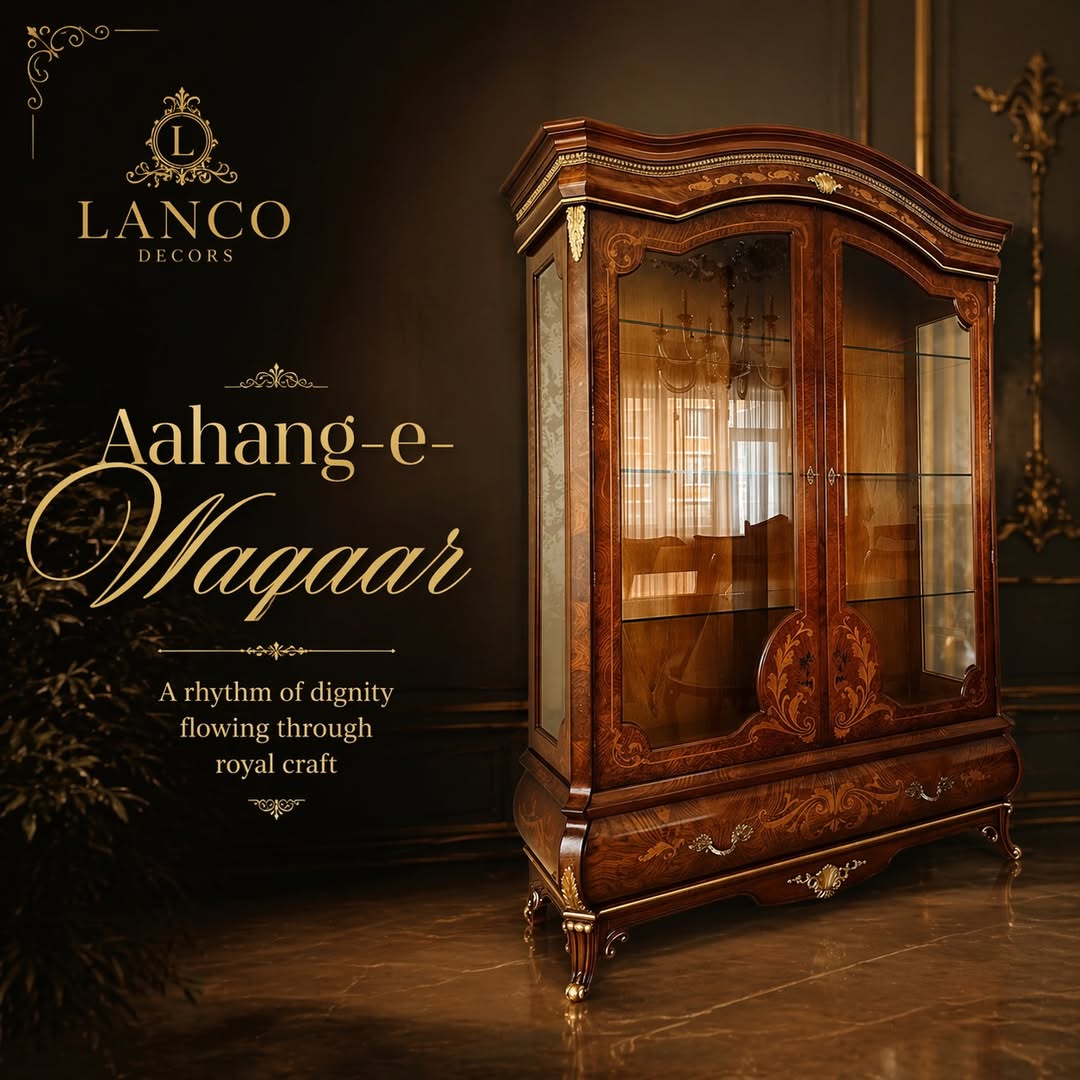 The Aahang-e-Waqar Display Cabinet is a symbol of refined elegance and heritage craftsmanship. Designed to showcase your finest décor, collectibles, and treasures, this cabinet reflects a perfect balance of luxury and functionality.