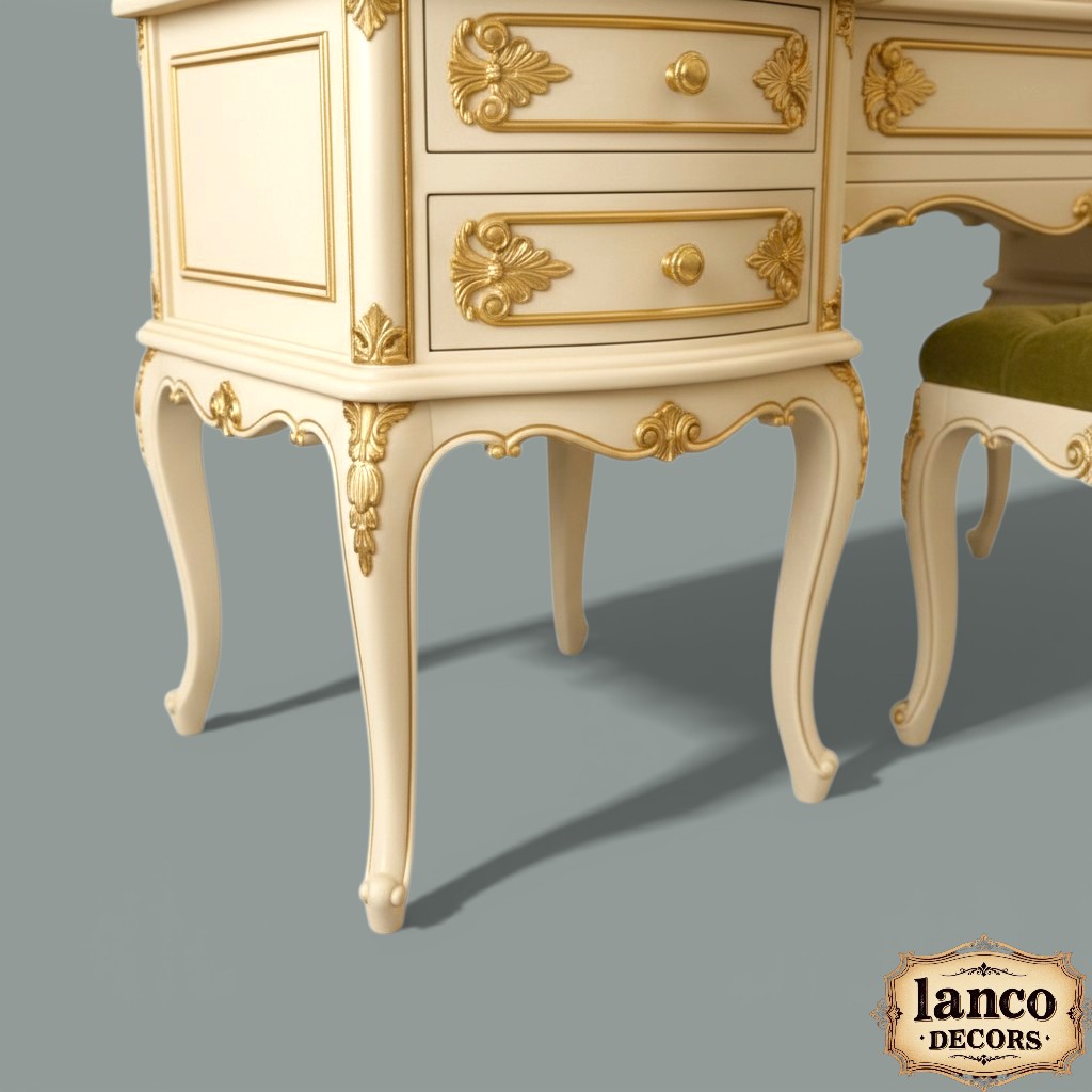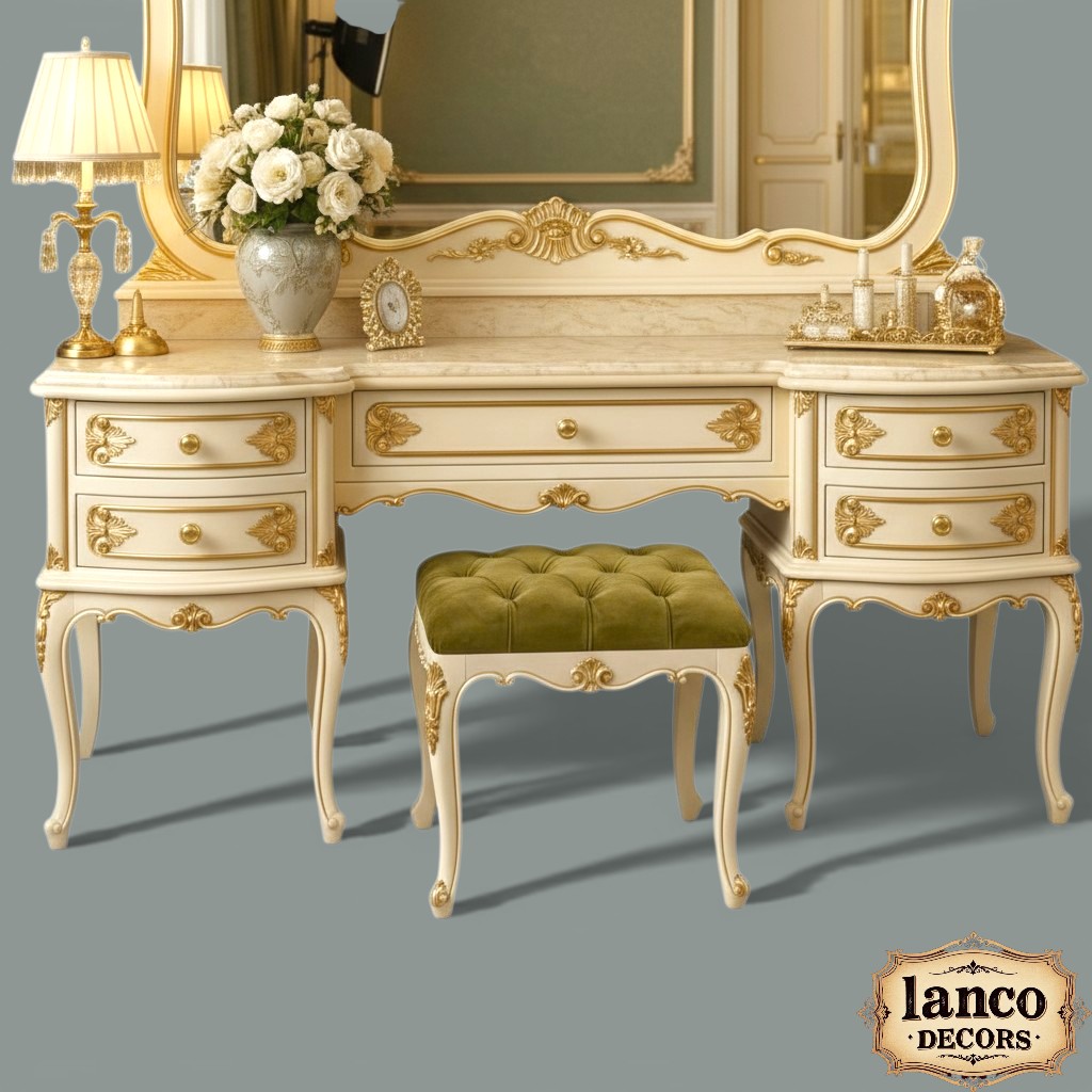 Inspired by the classical beauty of French Rococo design and the regal heritage of Hyderabad’s Nizami courts, this luxurious vanity table transforms everyday dressing into a royal ritual.