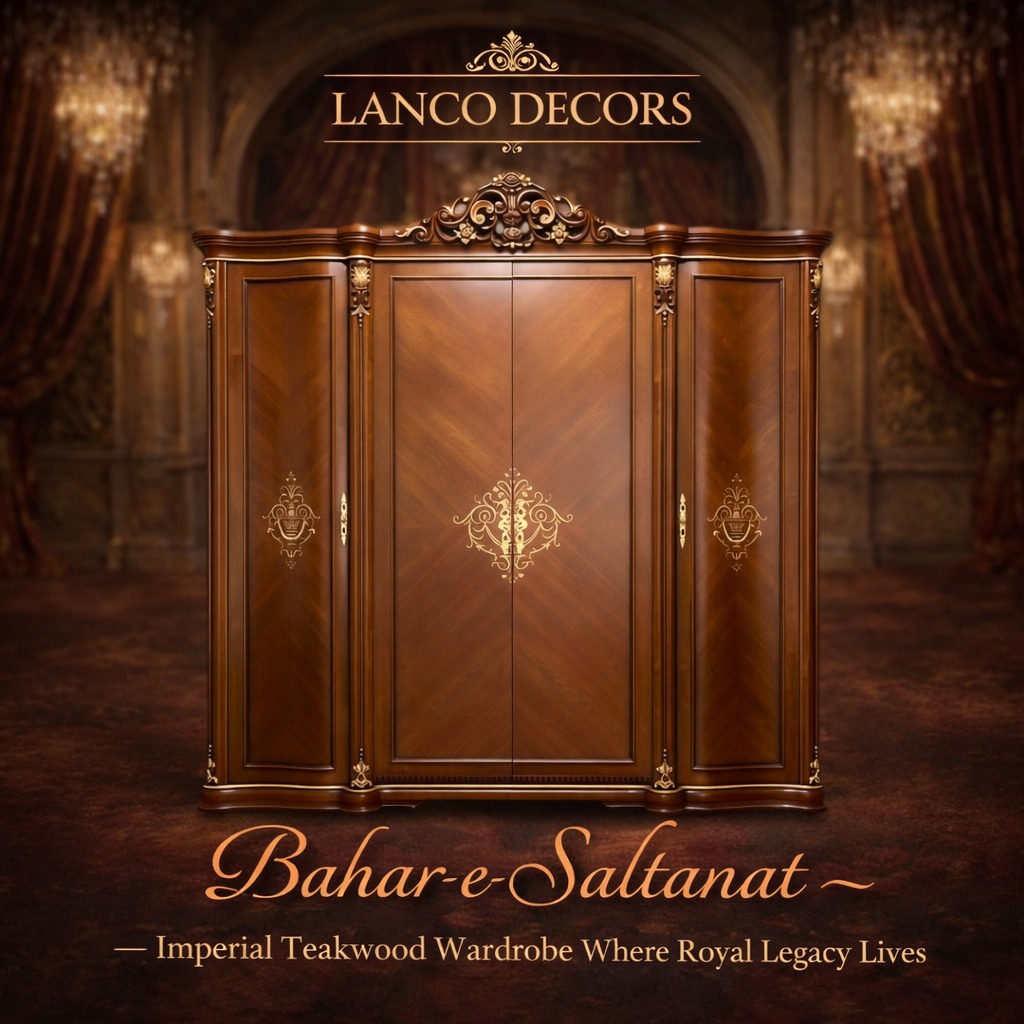 The Bahar-e-Saltanat Imperial Teakwood Wardrobe is a statement of royal elegance and timeless craftsmanship.