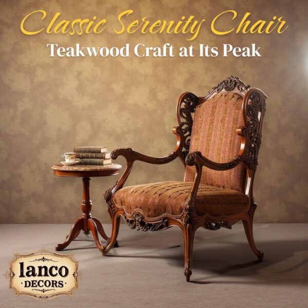The Classic Serenity Chair is an ode to old-world elegance and master craftsmanship. Handcrafted from seasoned solid teakwood, this chair showcases refined carvings, sculpted arms, and a perfectly balanced silhouette inspired by classical European and Nawabi interiors.