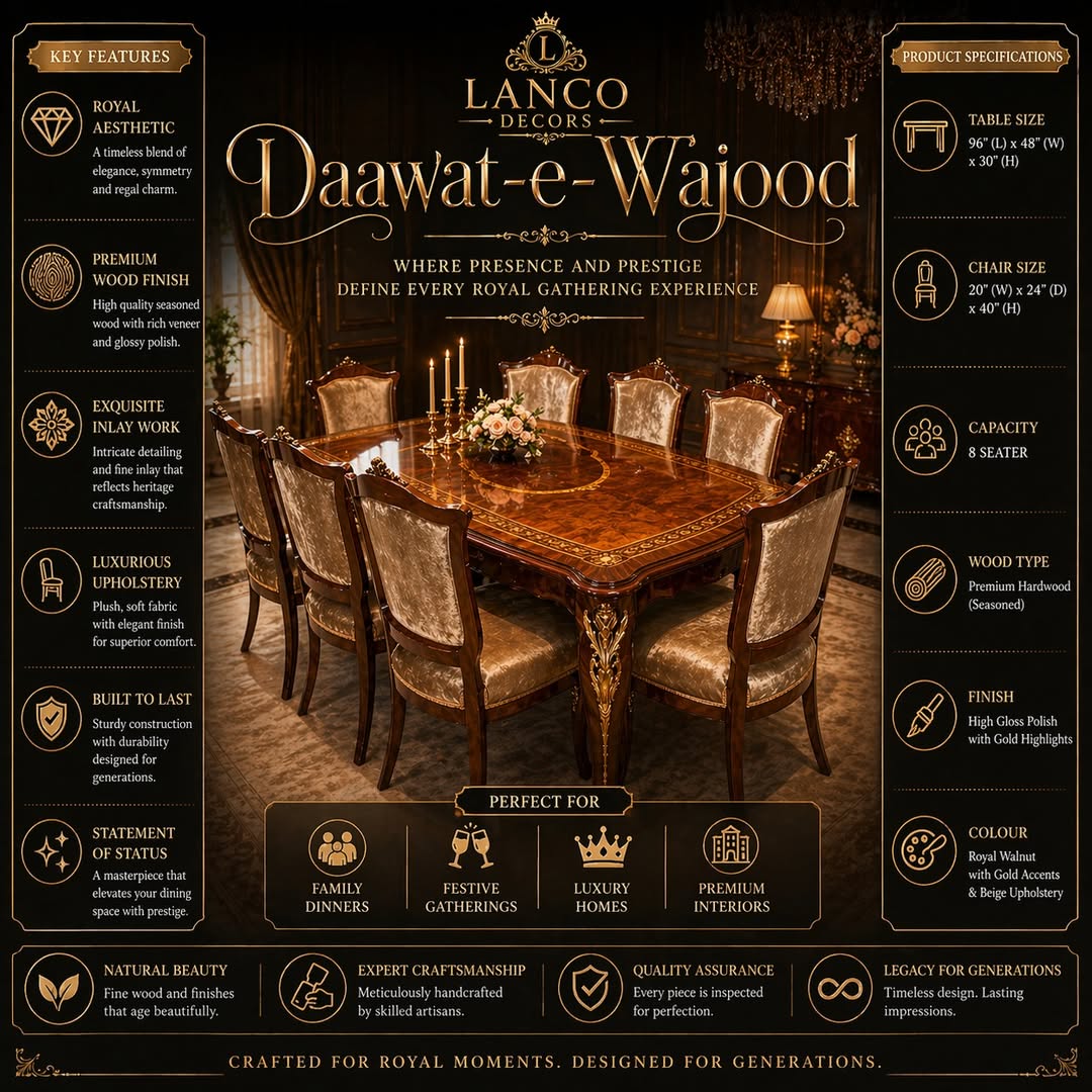 The Daawat-e-Wajood Dining Collection is a statement of prestige, crafted for those who believe dining is not just a routine—but an experience of royalty.