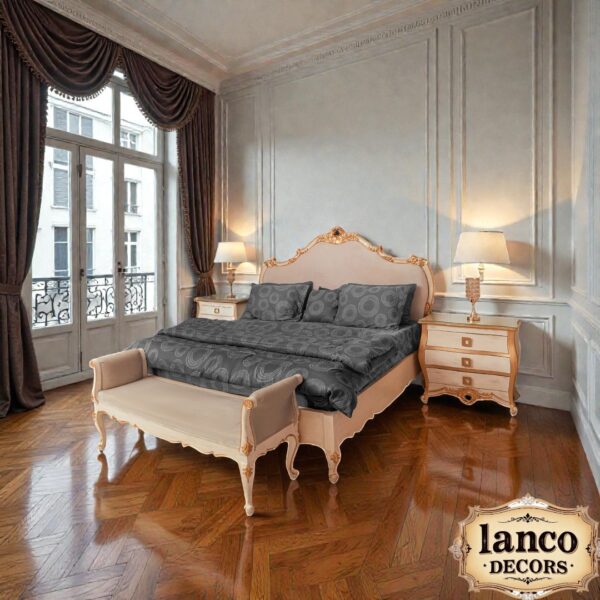 Dripping in elegance, the Empress Royale Velvet Bedroom Set is where 18th-century Paris meets 21st-century comfort. This handcrafted ensemble includes: