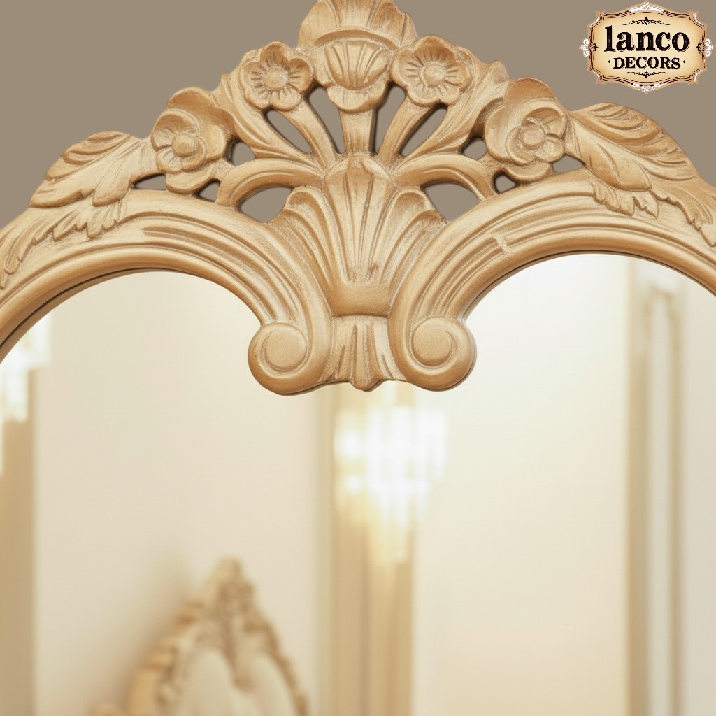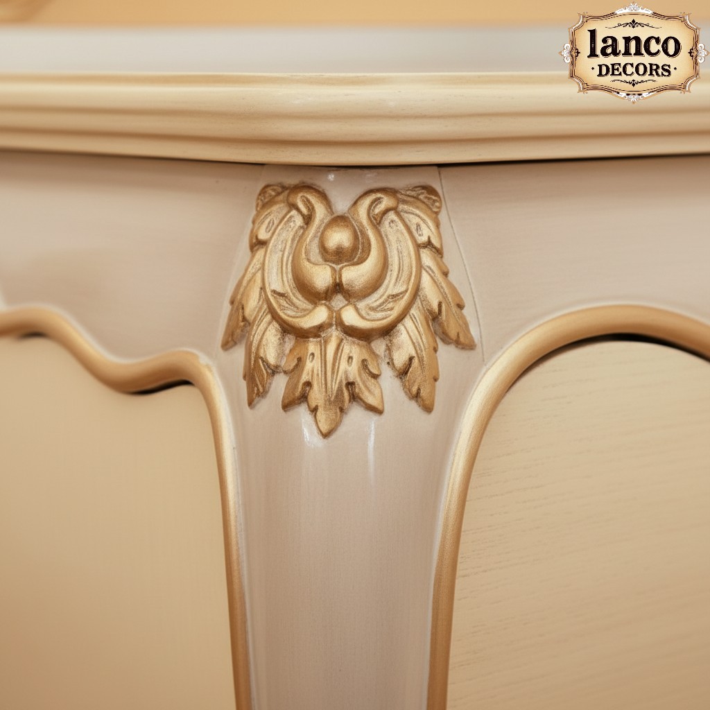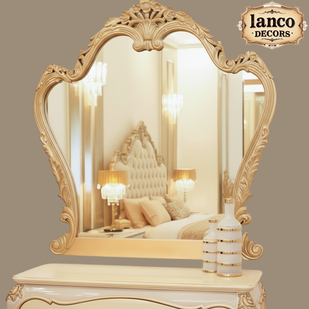 The Gulnar Bano Royale Dressing Table is an extraordinary masterpiece inspired by the opulence of French Rococo royal interiors. Designed with flowing curves, ornate carvings and a majestic mirror frame, this dressing table embodies timeless aristocratic elegance.