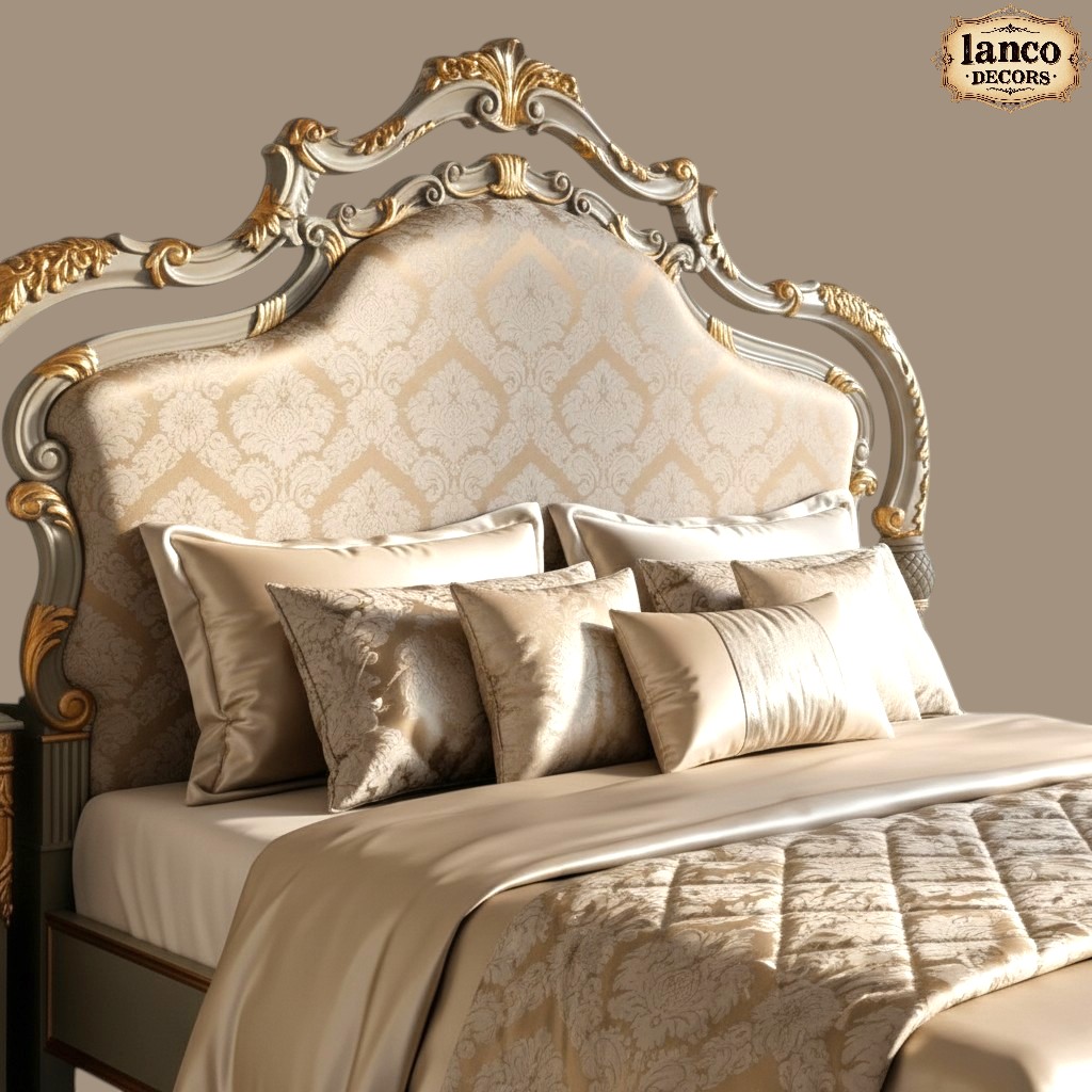 Made from 100% solid seasoned teakwood, this masterpiece features exquisite hand-carved detailing, refined curves, and a rich polished finish that highlights the natural beauty of the wood. Inspired by French Rococo and palace-style heritage design, the bed embodies grace, sophistication, and timeless charm.