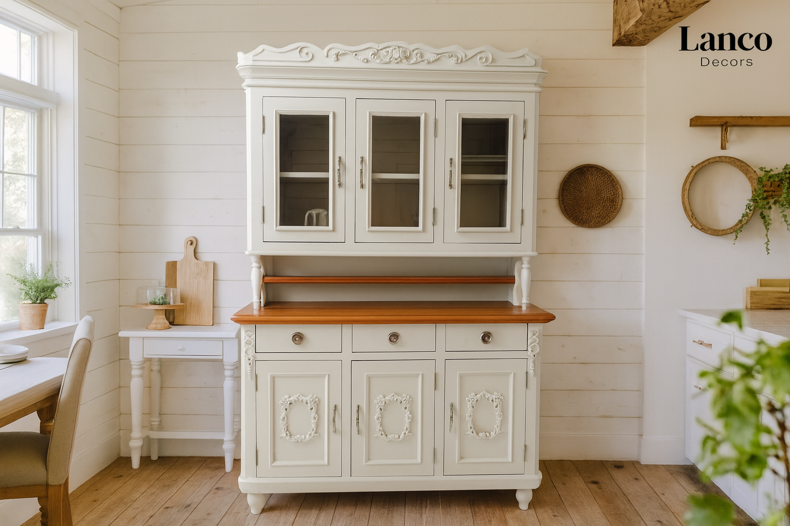 The Lanco Decors Farmhouse China Hutch is where timeless elegance meets functional storage: