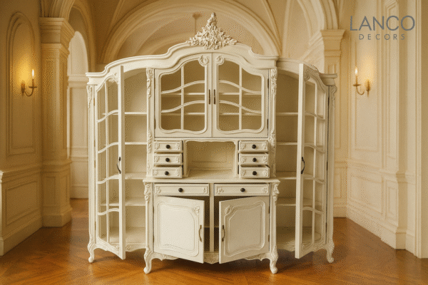 The Lanco Decors Imperial Elegance Display Cabinet is a striking combination of timeless design and practical functionality: