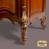 Features: Curved empire-style contours, brass knobs, velvet-cushioned seat