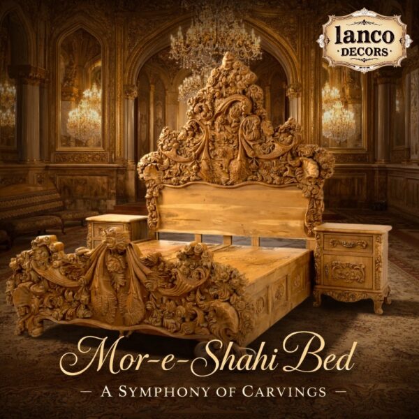 The Mor-e-Shahi Bed by Lanco Decors is the kind of furniture that laughs in the face of minimalism. With its sweeping hand-carved motifs of florals, feathers, and proud peacocks, it transforms your bedroom into a Baroque opera — complete with visual drama, but (hopefully) no tragic endings.