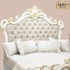 The bed features a grand tufted headboard framed with ornate carvings, flowing curves, and refined detailing that reflect the heritage of classical royal furniture.