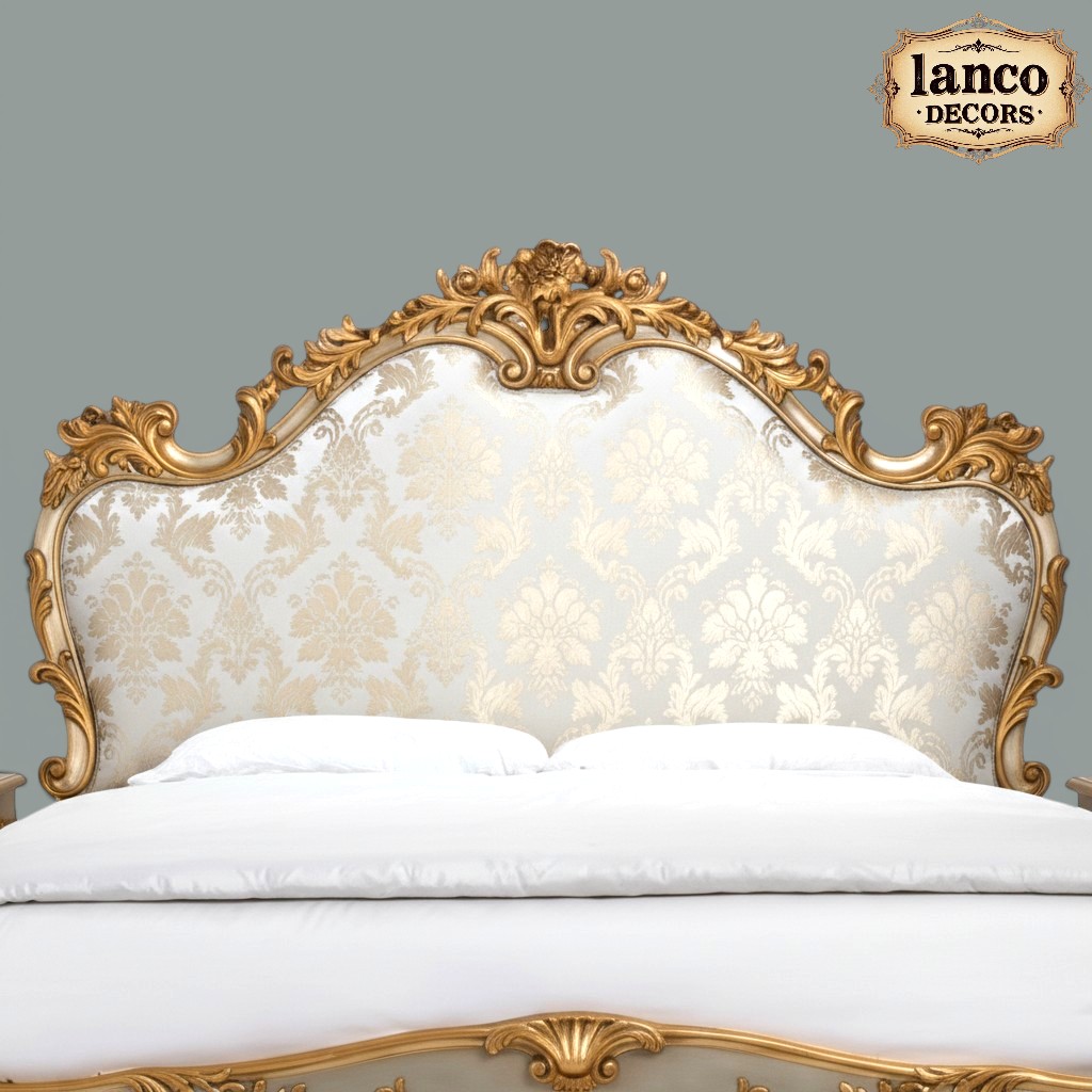 The gracefully curved headboard features rich upholstery with intricate patterns, blending comfort with royal aesthetics. Every curve and carving reflects heritage artistry, making it a centerpiece that transforms your bedroom into a palace-inspired sanctuary.