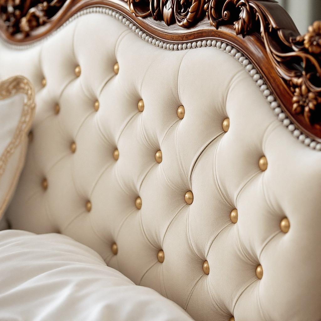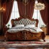 The luxurious tufted backrest offers plush comfort, while the richly carved footboard and side panels showcase master artisan detailing. Every curve, grain, and carving reflects heritage craftsmanship designed to last generations. This is not furniture — it is an heirloom statement for those who believe luxury should be felt, not explained.