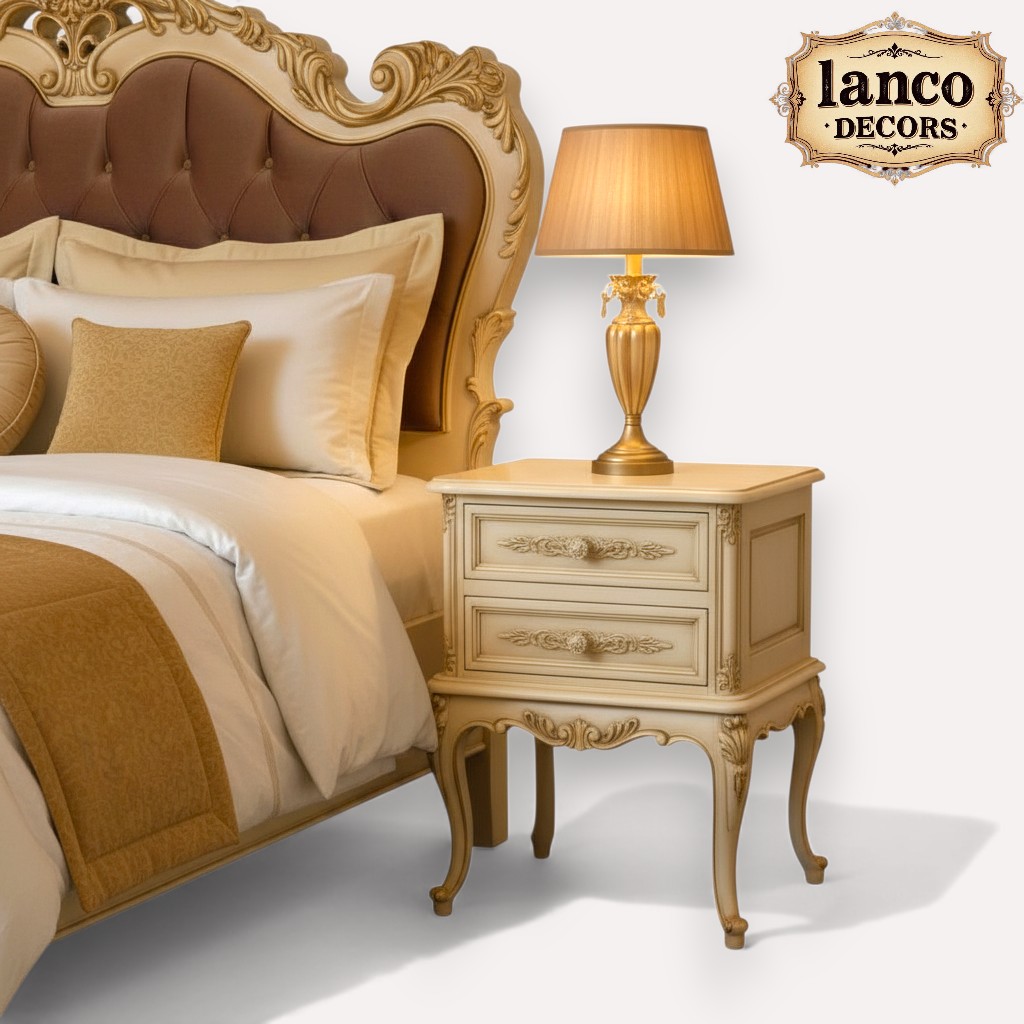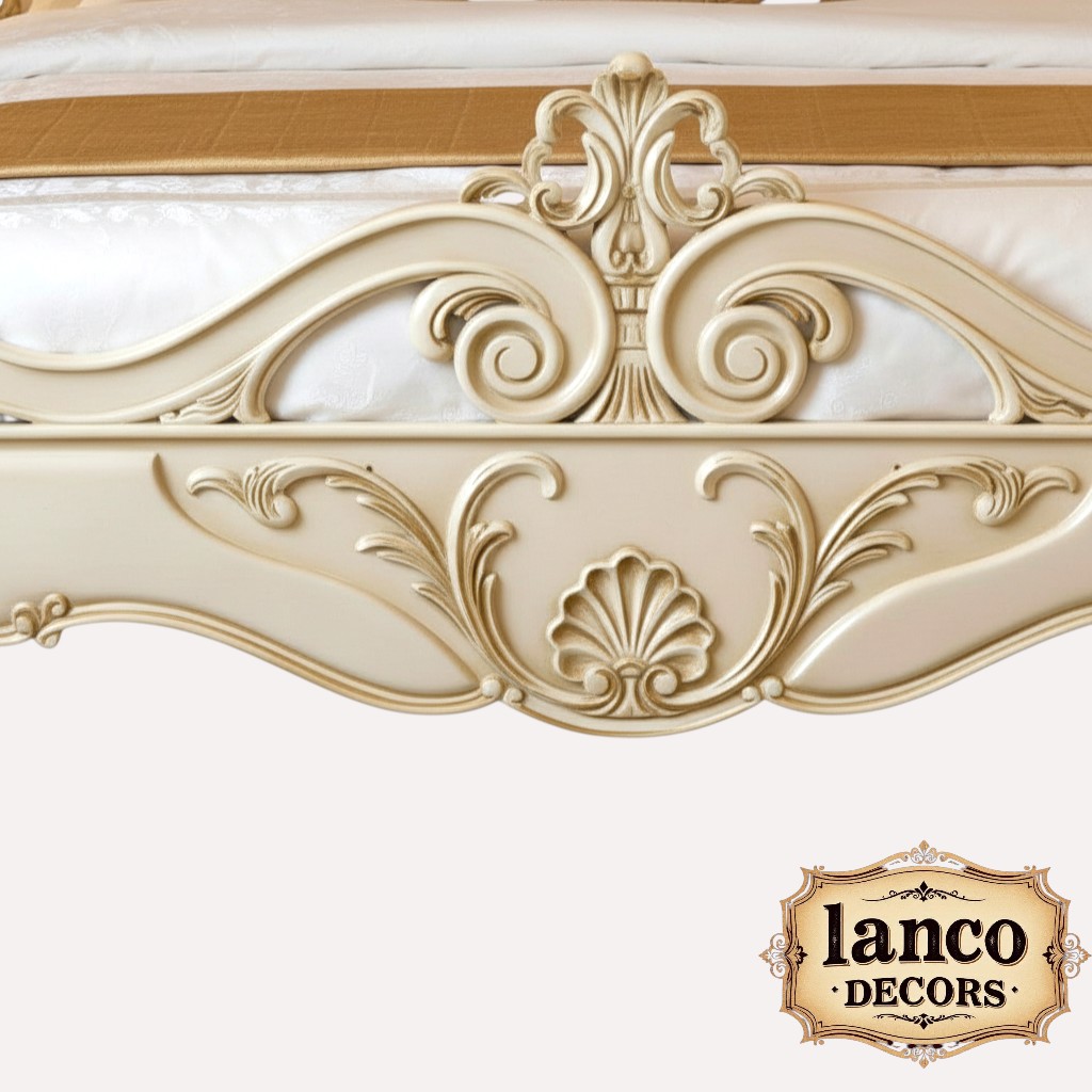 Welcome to the Royal Heirloom Suite, where every detail is a love letter to grandeur. Featuring a hand-carved king bed in ivory and gold finish, this suite is built to impress the kind of people who refer to their living room as a βdrawing room.β