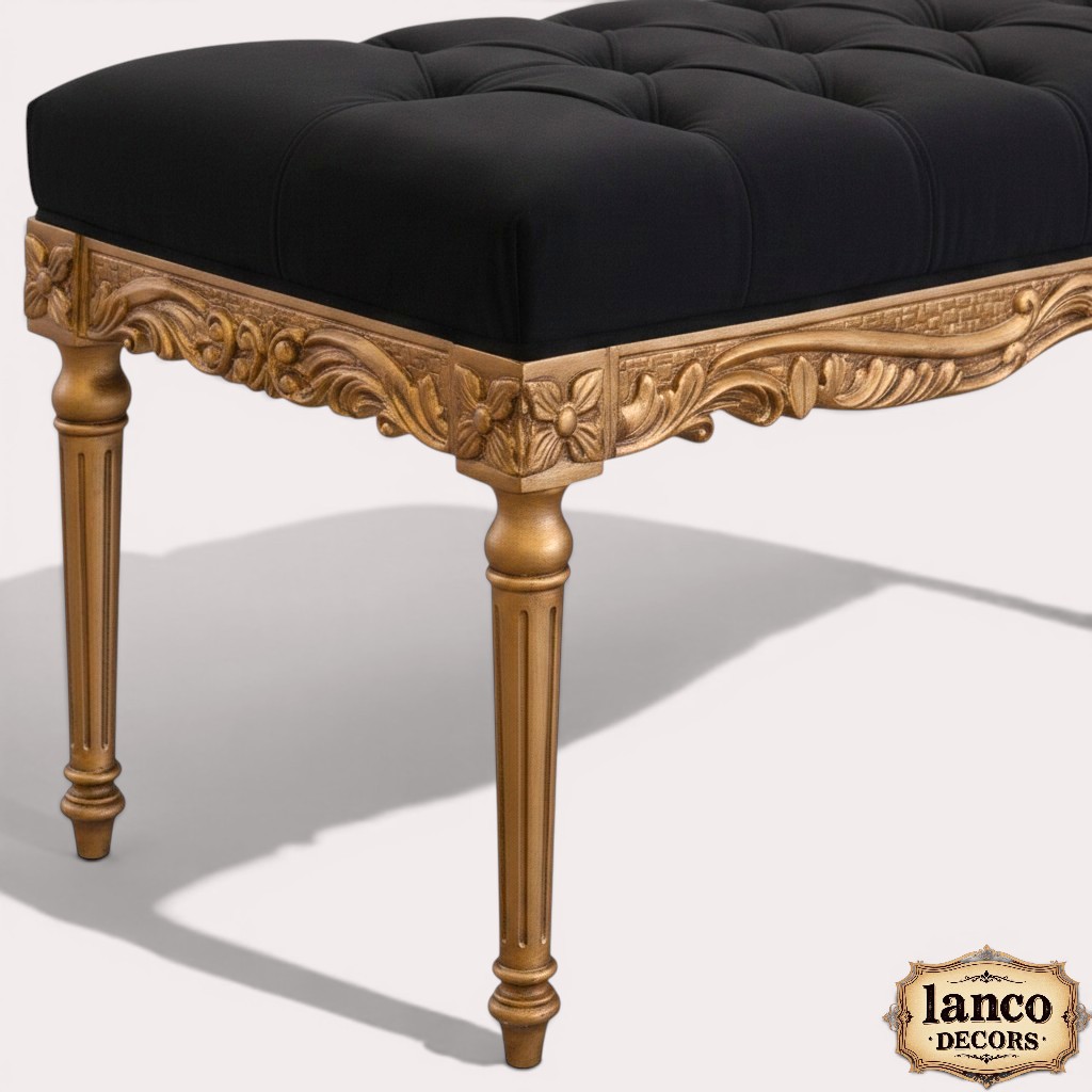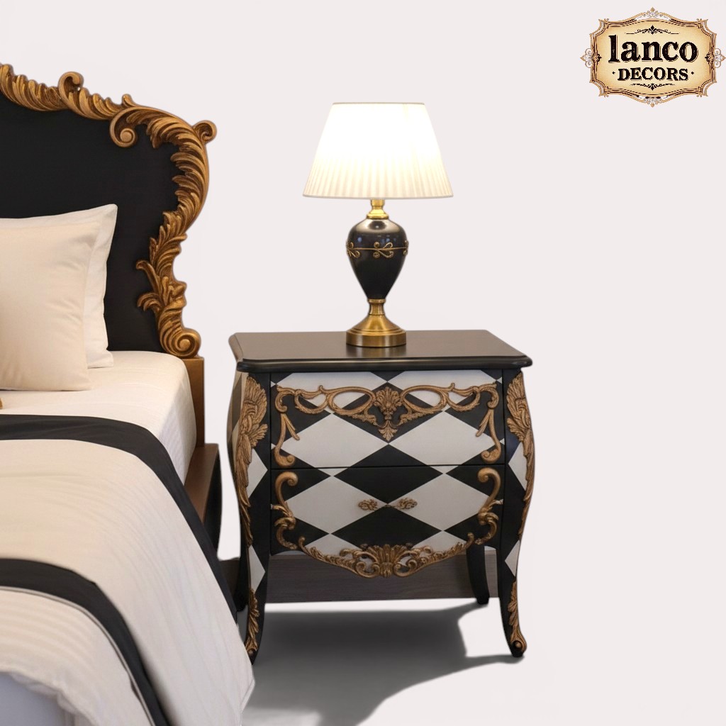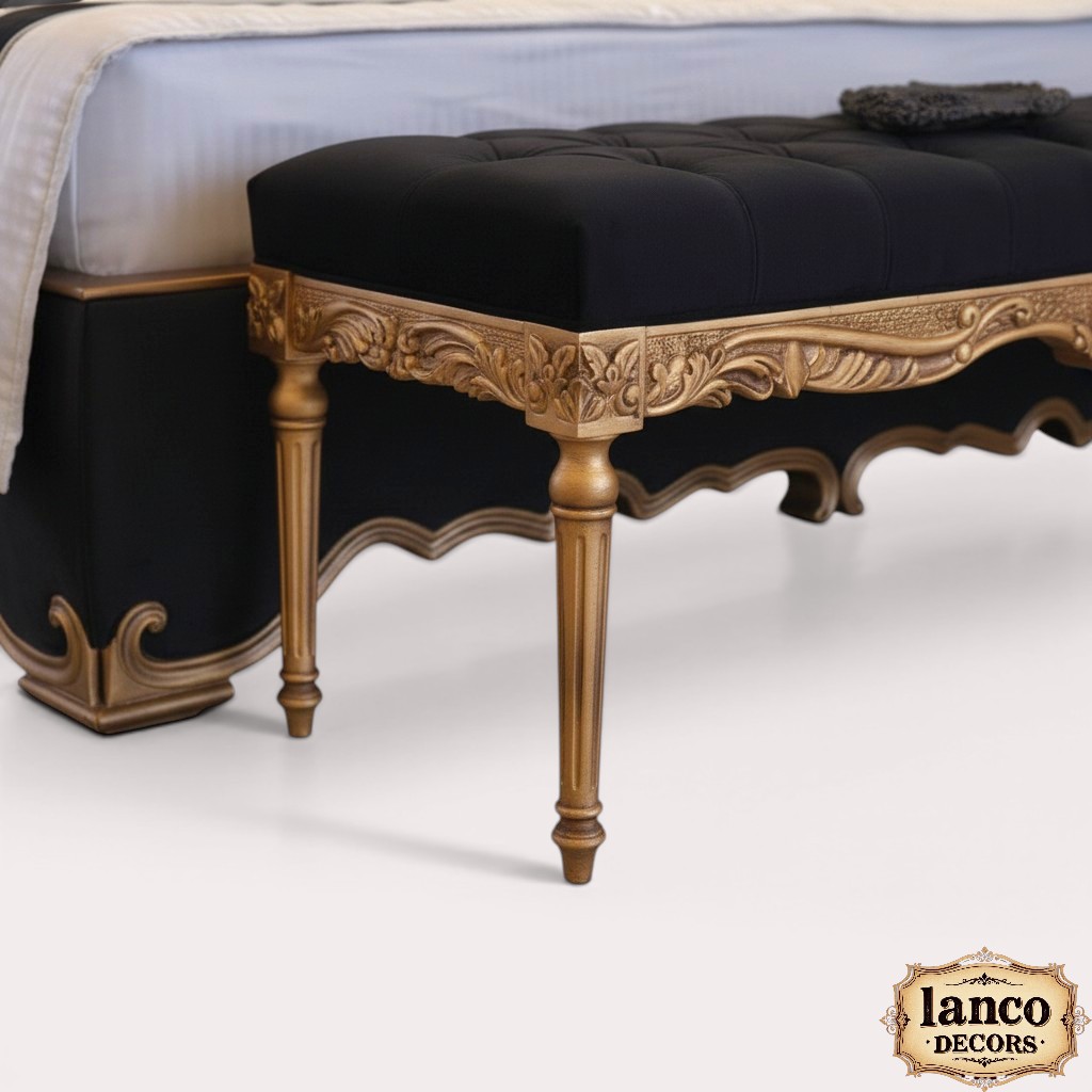 The Saba-e-Siyaah Bedroom Suite is a refined expression of bold luxury and timeless craftsmanship. Designed to capture the elegance of royal chambers, this masterpiece blends deep black tones with rich gold accents, creating a striking yet sophisticated presence.