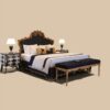 Crafted from premium solid teakwood, the bed features intricate hand-carved detailing and a plush upholstered headboard that enhances both comfort and visual appeal. Paired with elegantly designed side tables and a luxurious bench, the set transforms your bedroom into a palace-inspired retreat.