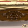 The grand upholstered headboard, finished in rich tufted fabric, adds depth, comfort, and visual drama. Ornamental carvings inspired by classical palace architecture enhance the regal silhouette, while the polished teak finish highlights the natural grain and strength of the wood.