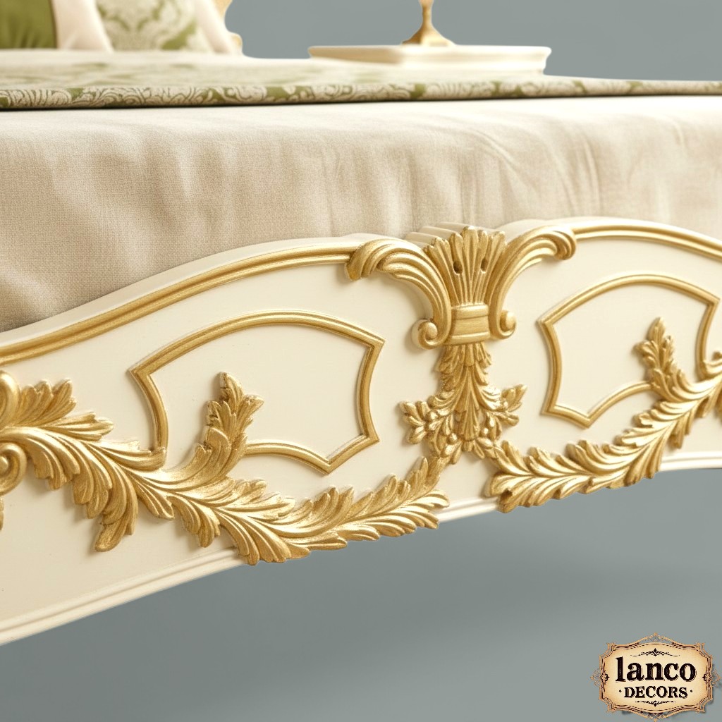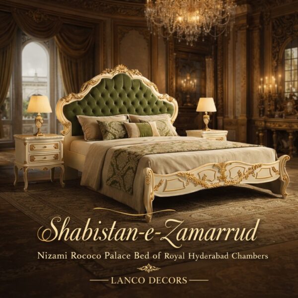 The Shabistan-e-Zamarrud Royal Palace Bed is a masterpiece of classical design and handcrafted luxury. Inspired by the elegance of European Rococo furniture and the regal heritage of Hyderabad’s Nizami palaces, this bed brings royal sophistication into modern luxury interiors.