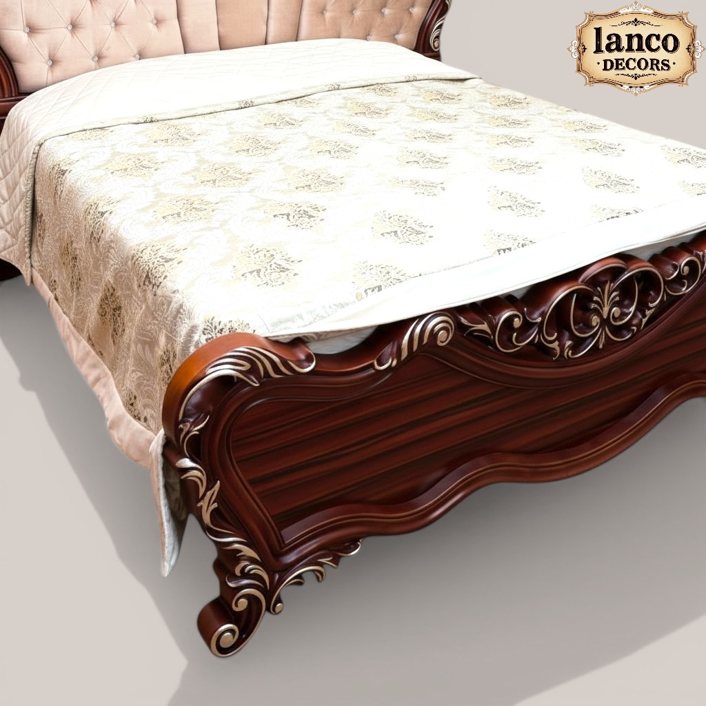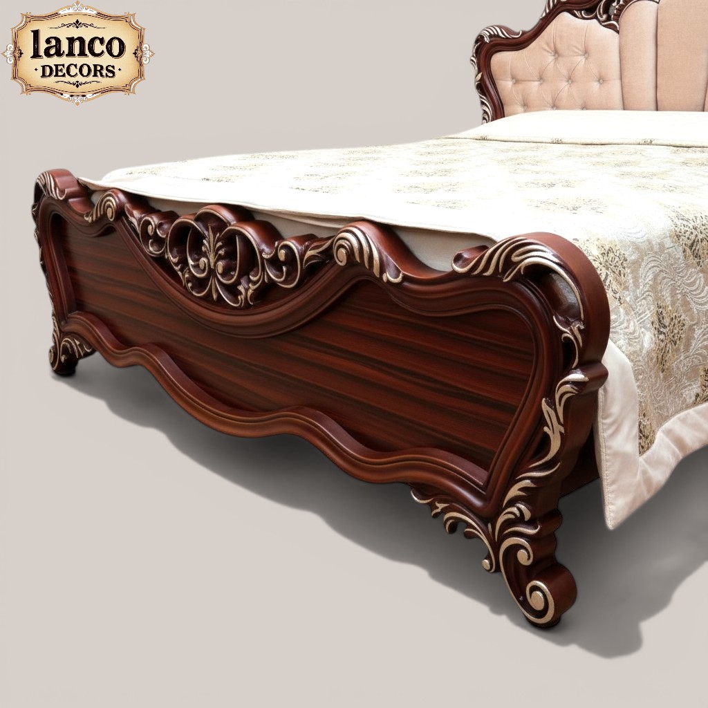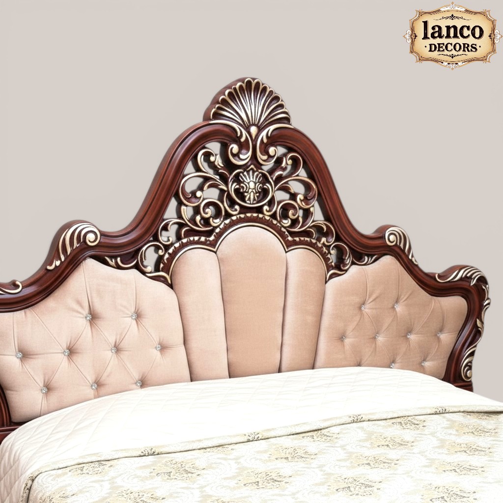 The elegant carved crown, sculpted footboard and graceful curves give the bed an imperial presence, making it the perfect centerpiece for luxury villas, heritage homes and royal interiors.