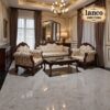 Elevate your interiors with The Blue Sovereign, a grand sectional sofa from Lanco Decors, designed for those who think sitting should feel like a royal privilege. Draped in luxurious navy velvet with exquisitely carved golden wood accents, this piece fuses baroque charm with modern comfort.