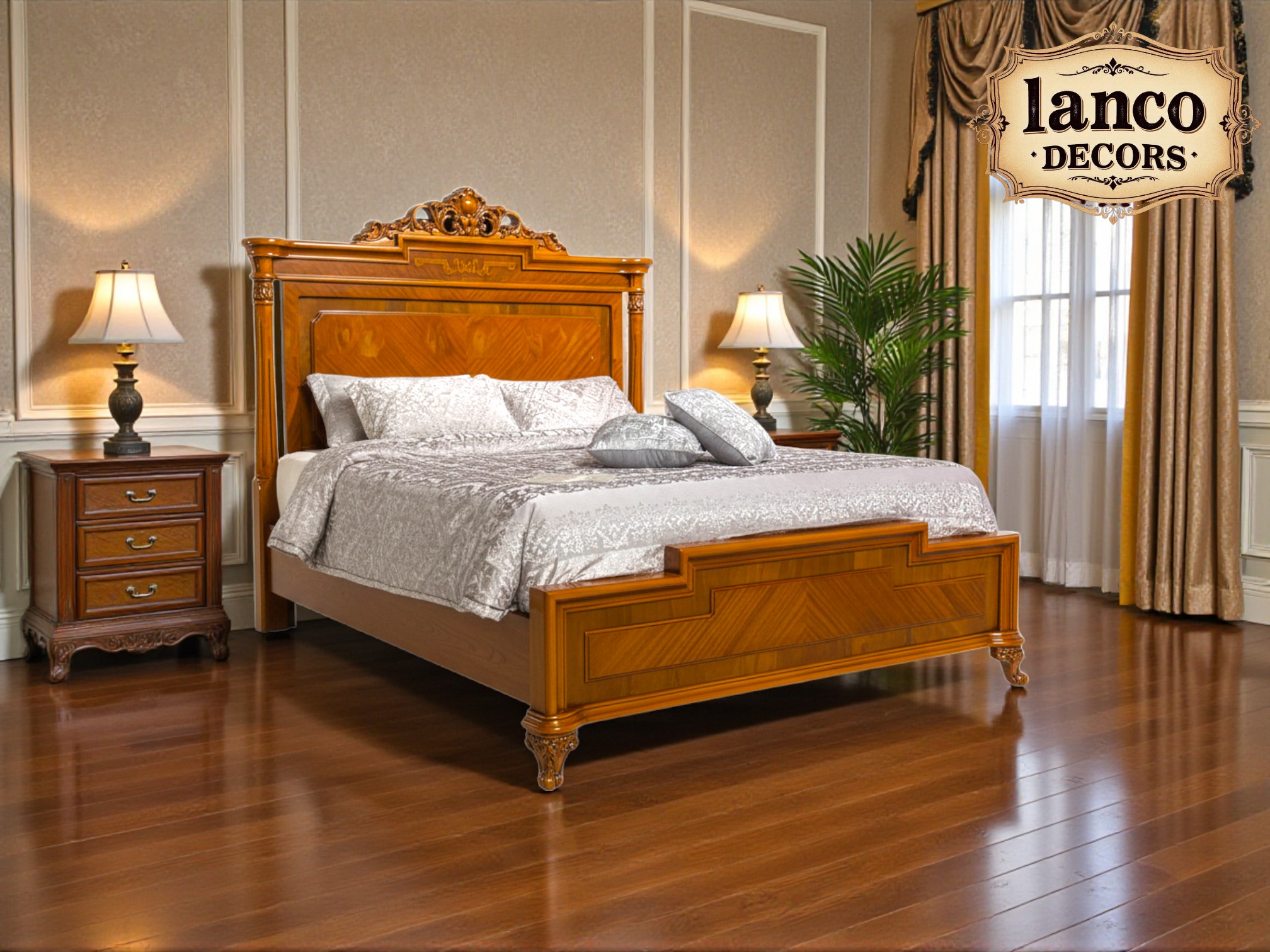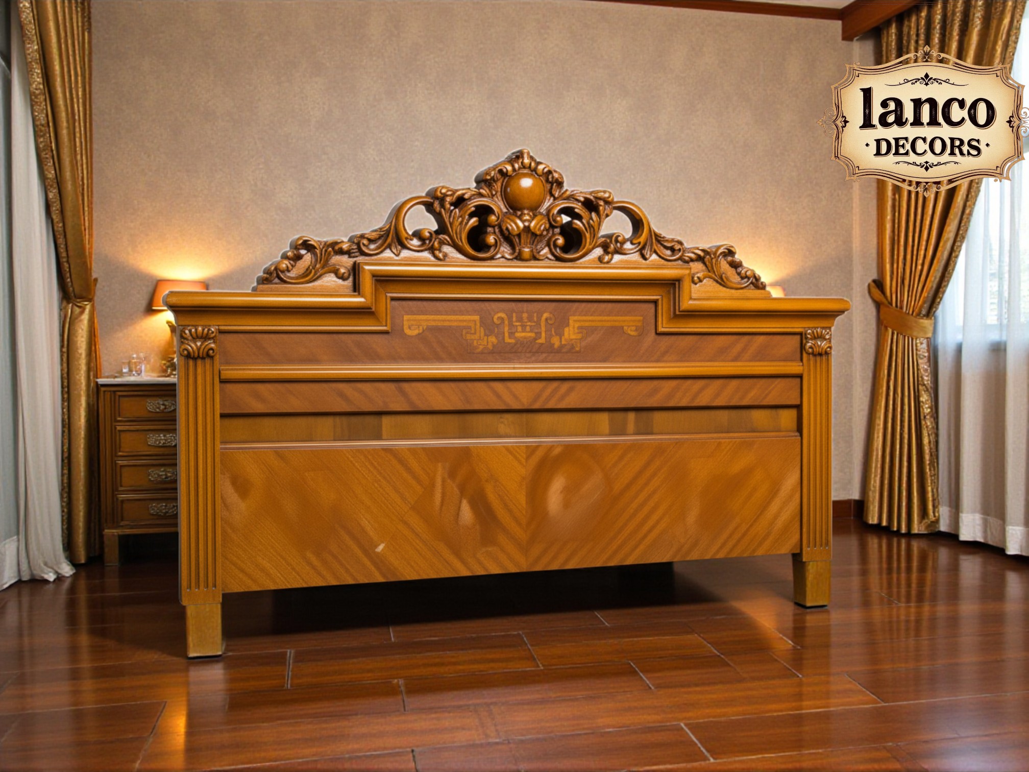 From the artful carving to the warm gloss finish, this bed is both a statement piece and a comfort haven. Perfect for luxury master bedrooms, classic villa interiors, or anyone who thinks sleep should happen on a throne.