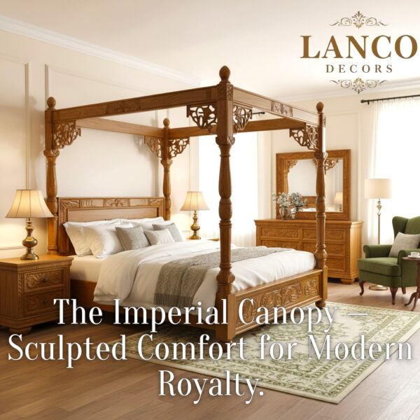 Behold the majestic Imperial Canopy Suite, where artisanal teakwood craftsmanship meets the grandeur of old-world royalty. Designed for those who prefer their sleep with a side of power and prestige, this suite includes: