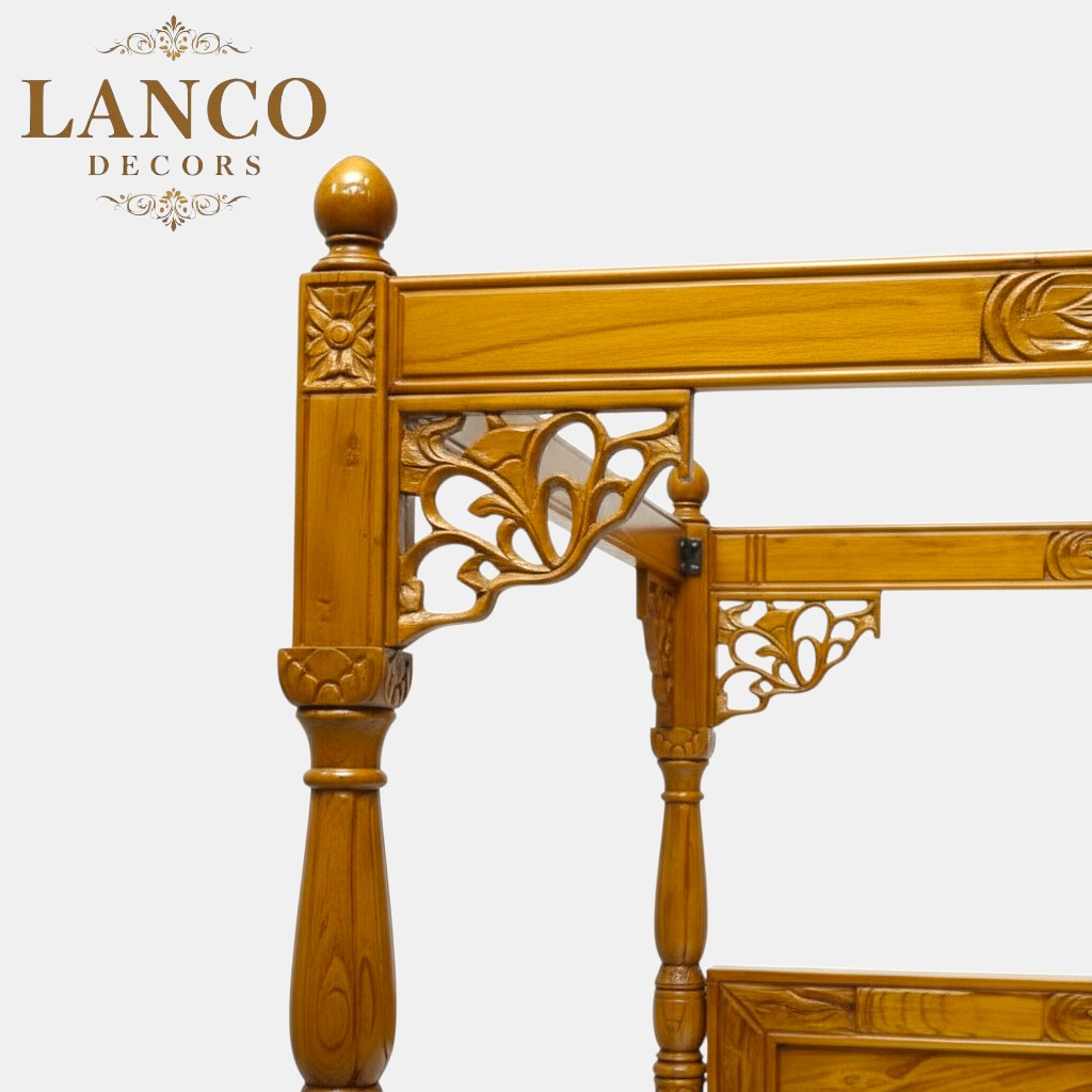 Detailed hand-carvings inspired by classic Indian and colonial design traditions