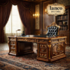 The Imperial Regency Teakwood Executive Desk Set is a premium luxury office furniture set crafted for CEO cabins, boardrooms, and elite workspaces. Made from high-quality seasoned teakwood, this executive desk showcases detailed hand-carved Baroque design accents, royal gold detailing, and rich premium finishing inspired by classic European aristocracy. Paired with a grand high-back tufted leather chair, it delivers exceptional comfort, durability, and powerful presence. Ideal for luxury offices, heritage libraries, and classic interior décor, this teakwood executive desk set transforms any workspace into a statement of authority and sophistication. Customization is available in size, polish, and design detailing.