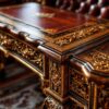 Imperial Regency Teakwood Executive Desk Set is a luxury handcrafted office furniture set made from premium teakwood, featuring baroque carving, rich finishing, and a tufted leather chair—ideal for CEO cabins and elite workspaces.