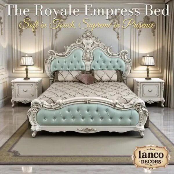 The Royale Empress Bed is not here to blend in. It’s here to reign. Designed for those who believe bedtime should come with chandeliers, chamber music, and a faint scent of lavender and ambition.