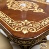 The intricately carved table base, paired with a lustrous inlaid tabletop, speaks volumes without saying a word (unlike your in-laws). Upholstered chairs in rich champagne tones provide a regal perch for guests, ensuring your gossip sessions feel like diplomatic meetings.
